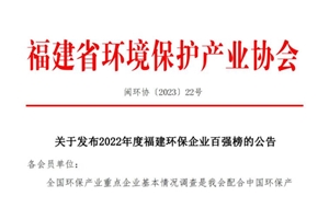 2022年度福建环保企业百强榜发布,8868体育位列第三