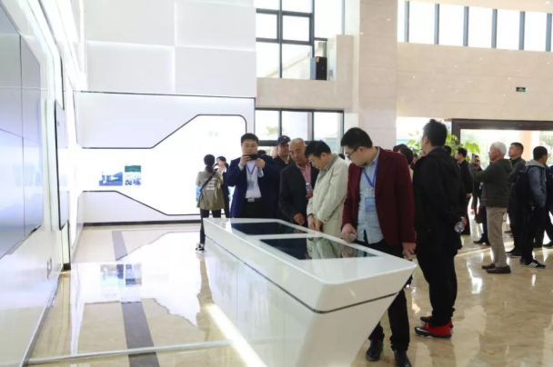 与会代表在一楼环保展厅体验环保互动游戏