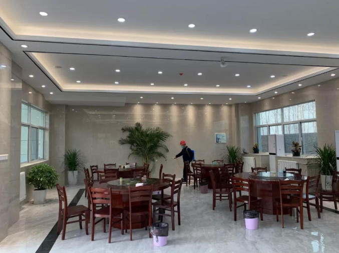 鄄城项目加强了门卫管理机制,配置红外温度检测,对所有返厂人员的体温、身体状况、有无经停或居住在疫情重点区域等情况做详细了解,并记录;严格监督食堂工作人员身体状况,从源头上杜绝食物污染、病毒传播现象的发生;食堂实行统一分餐制,避免排队、聚集用餐;每天进行两次厂区全覆盖、无死角消毒,为员工们牢牢筑起一道防疫之墙。