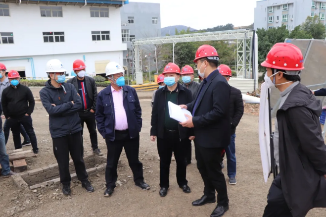 “疫情对工期进度影响大不大?”“项目什么时候竣工?”“爆破药量要严格控制。”“还在按规定隔离的返工人员有多少?”“目前在岗人员有多少?”王作彪副局长一行进厂便一步未停直奔项目现场,边查看边向项目总指挥王铁军询问相关情况。