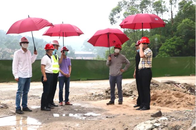 涂远承主任冒雨来到项目施工现场,不漏死角、不漏盲区详细察看并询问工程进度,了解工程建设中遇到的困难和问题。8868体育副总经理、南安市垃圾焚烧发电厂提级改造工程项目总指挥汪云保就项目前期手续、工程建设等做了汇报。也提及在此过程中遇到的困难、投产后垃圾处理效能等。