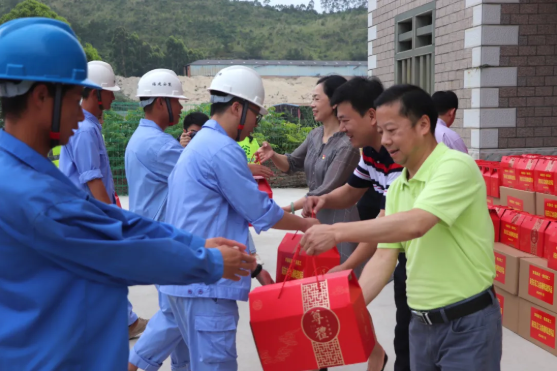 7月9日下午,南安市委常委、市总工会主席张小红,市城管局局长侯小泉等领导带着市委市政府、市总工会亲切关怀来泉州8868体育南安市生活垃圾焚烧发电厂提级改造工程项目走访慰问一线员工。