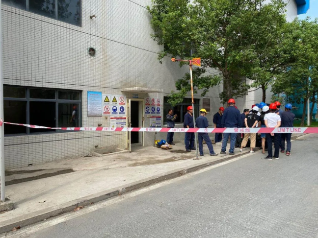 警戒组在事故周围拉起警戒线,防止无关人员进入。