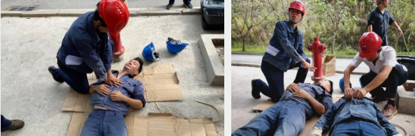 抢险组将中毒人员抬至开阔通风处后,救护组立即采取心肺复苏术、人工呼吸等措施紧急施救。