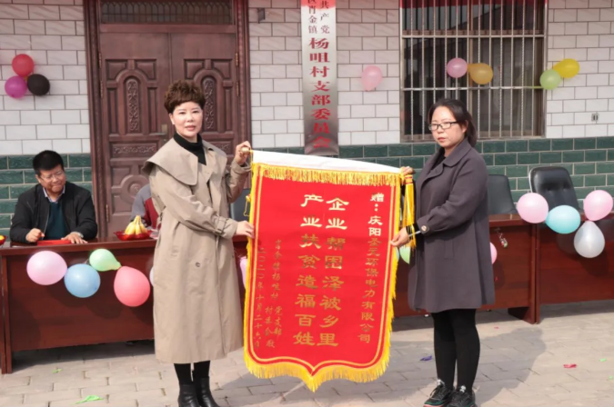 杨咀村、胡同村党支部先后派出代表向庆阳8868体育送上锦旗和荣誉牌,充分肯定庆阳8868体育在公益事业、产业扶贫等方面造福百姓的举措。