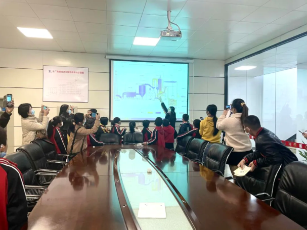 “既然是焚烧垃圾,那为什么那个大烟囱里没有黑色的烟冒出来?” “垃圾焚烧发电产生的那些废弃物又去了哪里?”小记者揣着一肚子疑问走进会议室。在观看过有趣的垃圾焚烧工艺视频动画和PPT展示后,小记者们对生活垃圾收集、转运、焚烧处理的工艺流程、环保设施运行、烟气排放指标等有了初步印象。