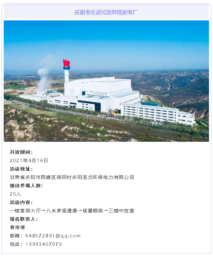庆阳8868体育以守护庆阳碧水蓝天为己任,以改善庆阳人居环境为动力,以携手公众共建美丽中国为目标。庆阳8868体育与您相约,在春暖花开时,来我电厂,参与到对垃圾焚烧行业的认知和对清洁处理生活垃圾过程的监督中来,共同为改善庆阳人居环境添砖加瓦!