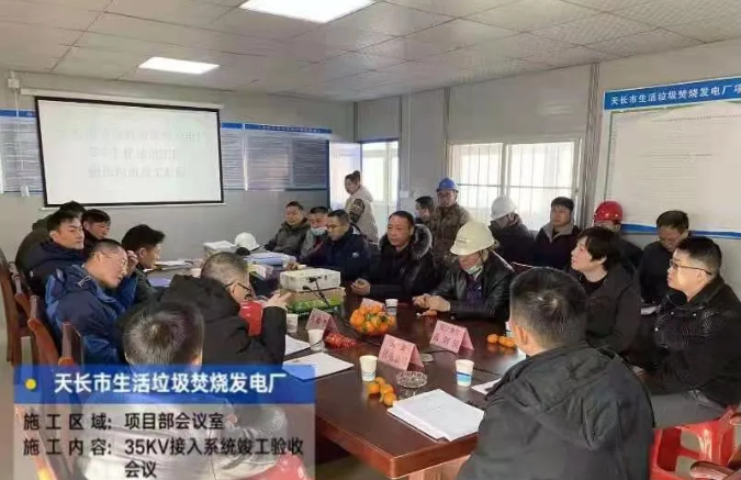 8868体育天长市生活垃圾焚烧发电厂项目开工以来,先后经过三次电力监检,于1月12日通过滁州市供电公司组织的专家组验收。项目推进过程,项目部积极协调各方,解决光差保护等问题,确保了顺利建设和验收。