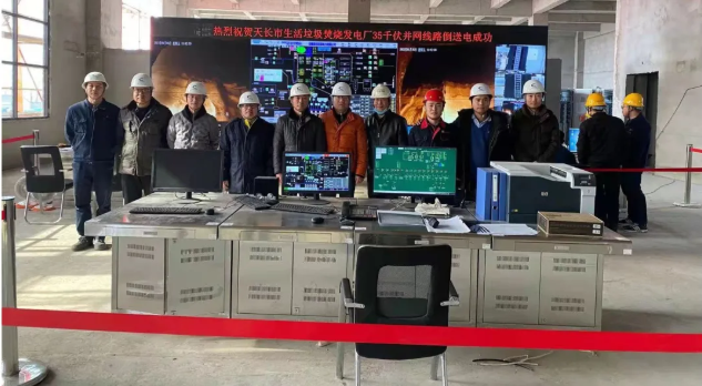 1月15日上午10点54分,8868体育天长市生活垃圾焚烧发电厂项目顺利完成35kV并网线路倒送电。