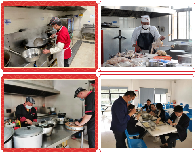 各个厂区食堂早早地就忙活了起来,拉菜单,选菜,备菜,煎、炒、烹、炸,一道道富有地方特色的菜肴被端上了桌,供给值班及留守员工享用。