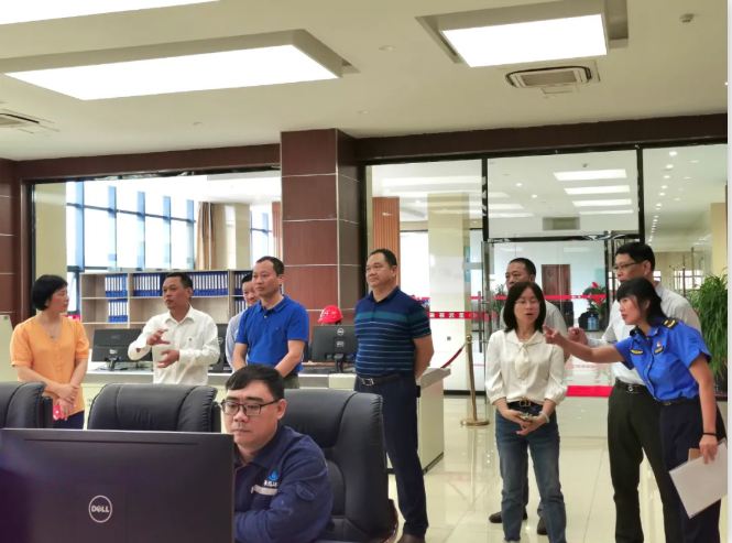 来到绿意盎然的漳州8868体育,调研组一行观看公司宣传视频,实地察看中控室、垃圾吊控制室等区域。在参观通道近距离察看汽机运行机组时,领导们仔细询问日发电量、日进厂量和日入炉垃圾量及吨垃圾发电量等情况。调研组还听取了杨宏湘总监等相关负责人关于生产运行情况的汇报。