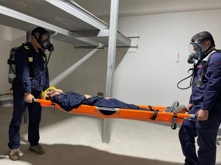 演练模拟了主厂房电缆层发生紧急火灾险情,一名员工中毒昏迷,其他人员自行组织救援和撤离,应急救援各小组第一时间赶到现场并共同成功处置险情的过程。