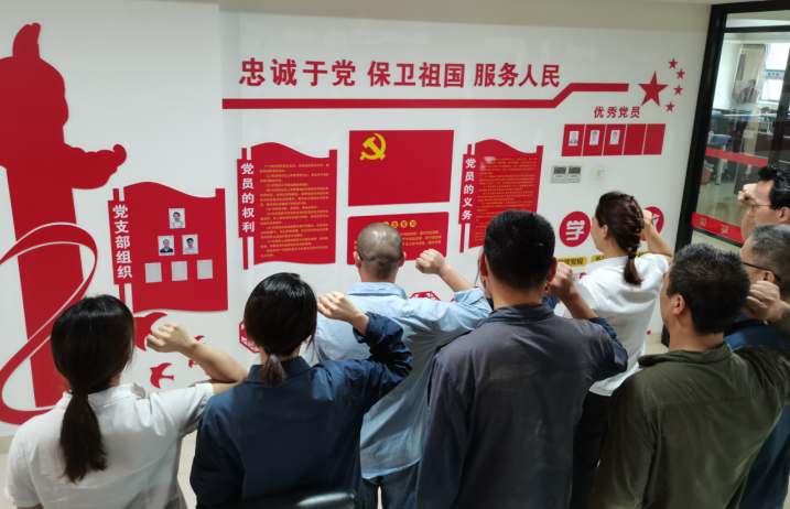 6月30日,莆田市8868体育电力有限公司党支部组织10名党员在三楼党建会议室重温入党宣誓,致敬建党百年。“我志愿加入中国共产党,拥护党的纲领,遵守党的章程……”,全体党员们面向鲜红的党旗整齐列队,高举右拳,发出铿锵有力的宣誓,用铮铮誓言表达对中国共产党的无限忠诚,嘹亮的誓言回响在每一位党员的心中。