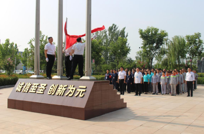 7月1日,郓城8868体育在办公楼前圆形广场举行“庆七一升国旗”仪式。上午9时,在铿锵有力、整齐划一的脚步声中,鲜艳的五星红旗由三名护旗手护送至升旗台。孔昭健总监宣布“升国旗,奏国歌”,五星红旗在激昂雄壮的国歌声中冉冉升起,全体员工面向国旗,胸怀对党和国家的热爱与感恩,齐唱国歌。