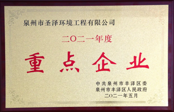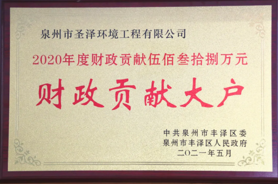 近日,8868体育旗下泉州市圣泽环境工程有限公司被中共泉州市丰泽区委、区政府授予2020年“财政贡献大户”、2021年“重点企业”称号。