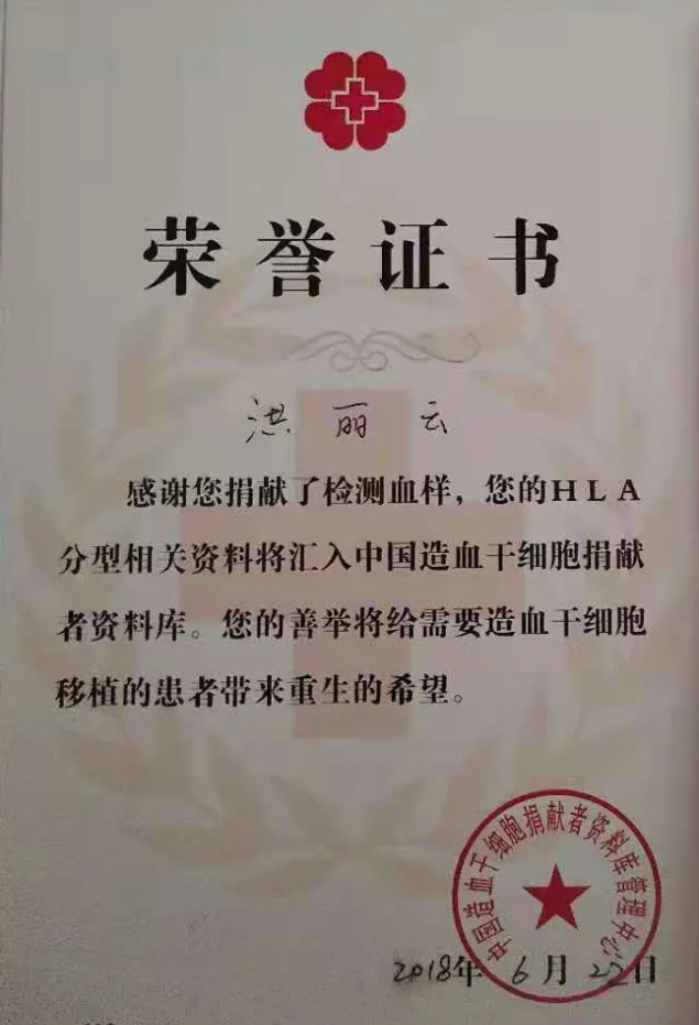 洪丽云经常在工余时间思考自己还能为社会和普通群众做些什么。2018年,她做出了一个勇敢的决定——向中国造血干细胞捐献者资料库捐献检测血样,一旦有患者配对成功,她将义不容辞地捐献自己的造血干细胞。这位南安8868体育的巾帼,心怀大爱,甘于奉献。