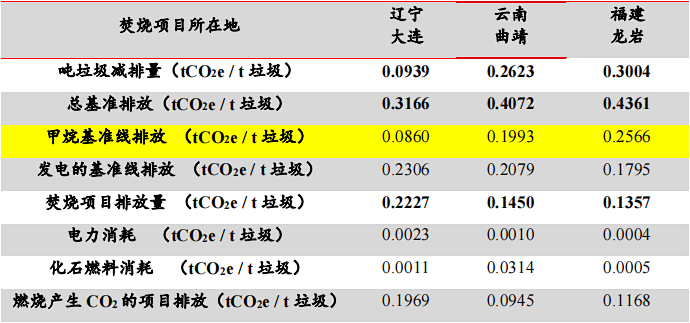 表:“甲烷基准线排放”的吨垃圾温室气体排放差异最大
