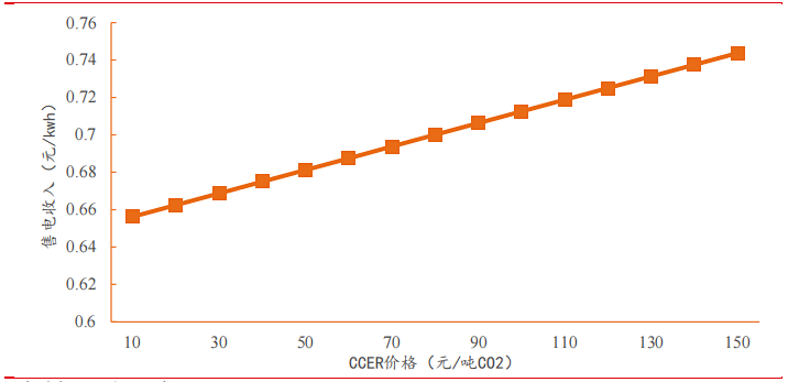 计算得到,CCER交易价格为80元/吨CO2时,售电收入可增加0.05元/kwh,收入增厚可达7.7%。