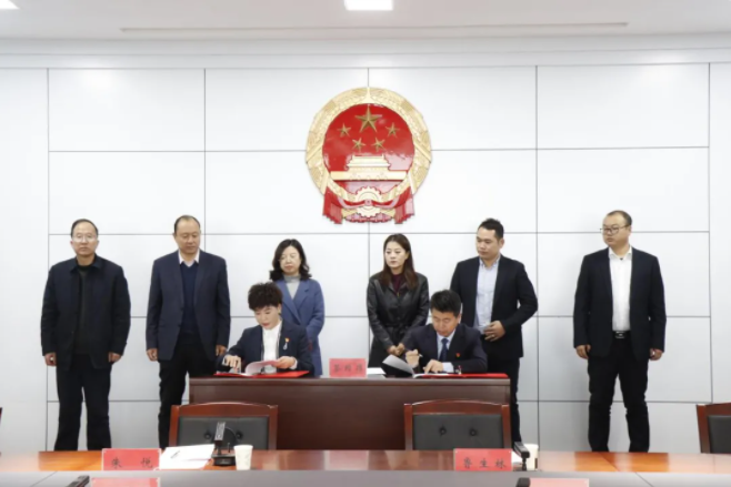 签约仪式上,环县县委常委、常务副县长鲁生林与庆阳8868体育二期项目总指挥叶红侠分别代表双方签署协议。县委常委、宣传部部长朱悦主持签约仪式,县人大常委会副主任魏喜龙,县政协副主席杜创洋等双方相关负责人参加签约仪式。