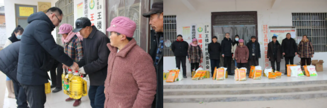 曹县8868体育党支部书记王佰通一行带着米、面、油等慰问物资,来到厂区周边王楼村开展新春送温暖活动,看望慰问困难群众。