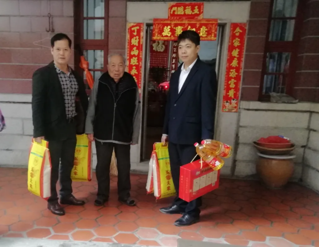漳州8868体育运营总监杨宏湘为漳浦县旧镇镇林美村民委员会送去春节慰问金,由村委会代为发放村内老人春节福利,将公司的关爱注入到老人们的心田。