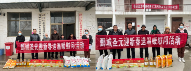 鄄城8868体育运营总监吴小平带领慰问小组,在北富春村村委干部的陪同下,为困难家庭和孤寡老人并送上了油、大米、面粉等新春慰问品和新春佳节的美好祝福。