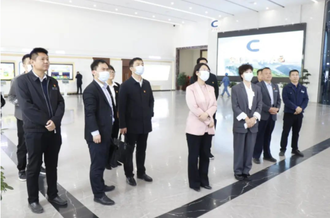 考察组一行先后参观了宣导大厅、参观通道、景观烟囱、办公楼等区域,着重听取了叶红侠总指挥关于庆阳8868体育党建工作、疫情防控和当前二期施工进度及存在困难等情况的汇报。