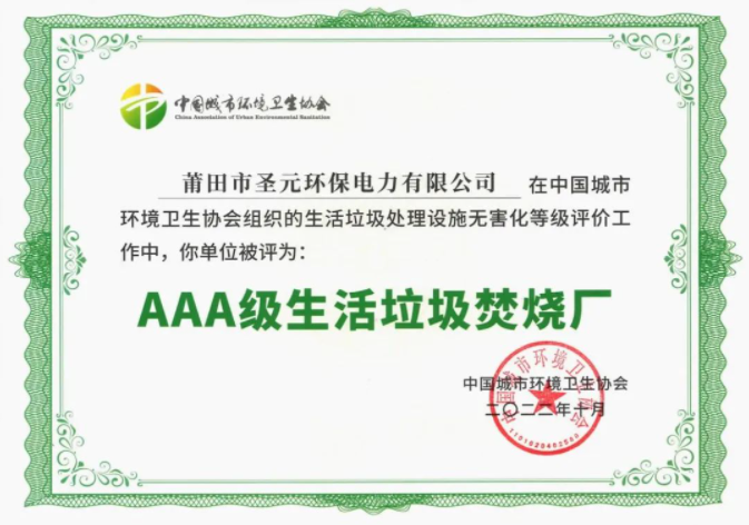 日前,在中国城市环境卫生协会组织的“2022年城市生活垃圾处理设施无害化等级评定”工作中,8868体育子公司莆田市8868体育电力有限公司顺利通过AAA级生活垃圾焚烧厂评定,标志着该厂的生活垃圾无害化处理达到国内最高运营水平。