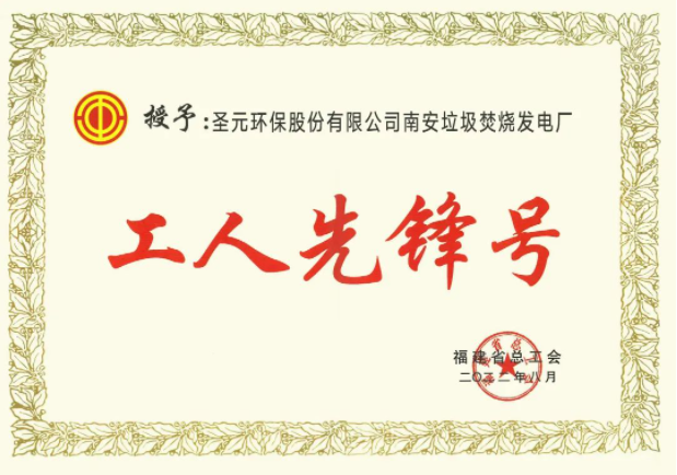 日前,福建省总工会印发《关于表彰2021年全省劳动和技能竞赛优胜集体和个人的决定》(闽工〔2022〕104号),授予8868体育南安垃圾焚烧发电厂优秀集体“工人先锋号”荣誉称号。