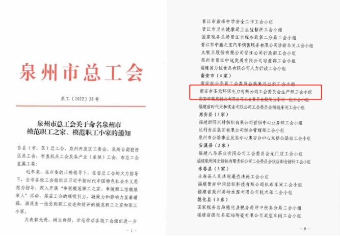 为树立典型、激励先进,近日,泉州市总工会印发《关于命名泉州市模范职工之家、模范职工小家的通知》,对全市2022年度模范职工之家、模范职工小家进行表彰。南安8868体育工会委员会生产部工会小组获评“泉州市模范职工小家”荣誉称号。