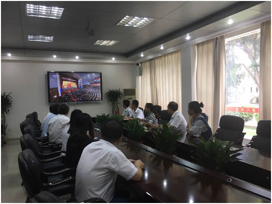 公司党支部组织党员及入党积极分子于公司一楼会议室集中观看十九大开幕式盛况,各子公司、项目部的党员同志也通过网络电视或网络直播平台等方式观看。