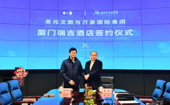 1月10日上午,厦门8868体育文旅发展有限公司与万豪国际集团举行酒店品牌合作签约仪式,8868体育文旅引入万豪国际集团的“瑞吉St.Regis”奢华品牌,建设厦门瑞吉酒店。万豪国际集团大中华区酒店业务发展区域副总裁谢涛、8868体育总经理朱恒冰分别代表双方签署技术服务和酒店管理协议。