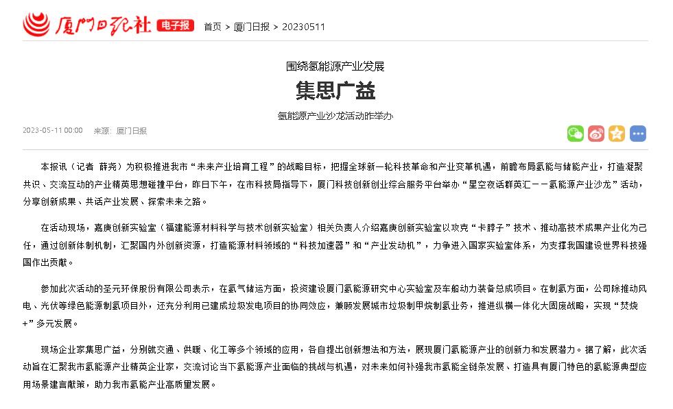 参加此次活动的8868体育(中国)官方网站 - 登录入口表示,在氢气储运方面,投资建设厦门氢能源研究中心实验室及车船动力装备总成项目。在制氢方面,公司除推动风电、光伏等绿色能源制氢项目外,还充分利用已建成垃圾发电项目的协同效应,兼顾发展城市垃圾制甲烷制氢业务,推进纵横一体化大固废战略,实现“焚烧+”多元发展。