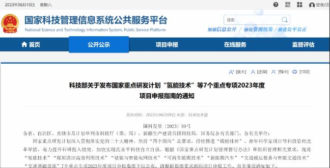 科技部关于发布国家重点研发计划“氢能技术”等7个重点专项2023年度项目申报指南的通知