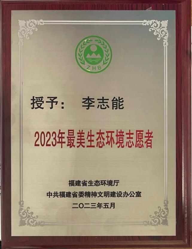 日前,福建省生态环境厅、中共福建省委精神文明建设办公室发出通知,公布了2023年“‘美丽中国,我是行动者’提升公民生态文明意识行动计划”福建省先进典型名单。其中,莆田8868体育宣导中心李志能入选2023年福建省最美生态环境志愿者。