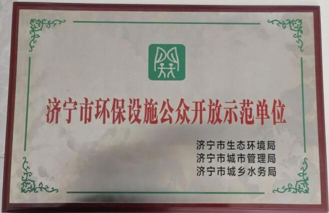 近日,梁山8868体育荣获济宁市生态环境局、济宁市城市管理局和济宁市城乡水务局联合颁发的“济宁市环保设施公众开放示范单位”。