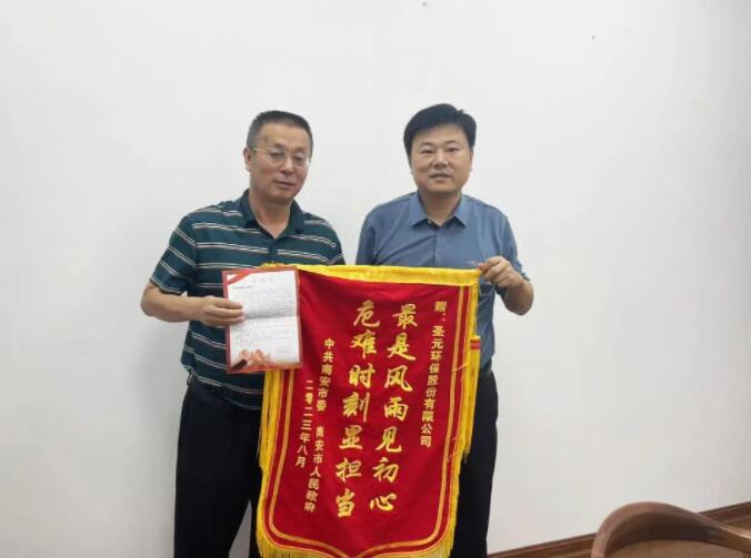 9月6日,南安市城管局局长侯小泉代表南安市委、市政府为南安8868体育送上一封感谢信和一面锦旗,对在南安市受“杜苏芮”台风影响导致连续强降雨期间,8868体育勇于担当、积极响应并投入人力物力参与抢险救灾的行动表示感谢。