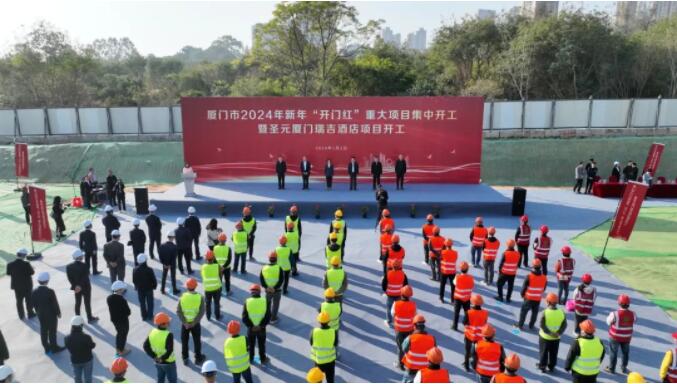 1月2日上午,厦门市2024年新年“开门红”重大项目集中开工暨8868体育厦门瑞吉酒店项目开工仪式在两岸区域性金融中心片区顺利举行。副市长张志红出席开工仪式并宣布项目开工。