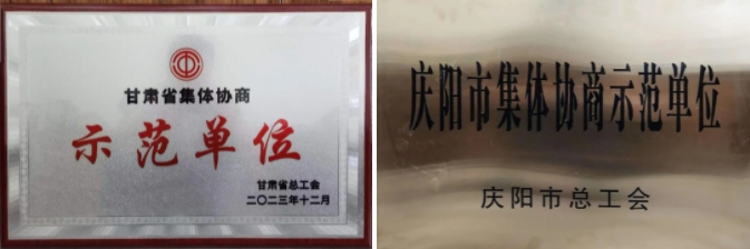 近日,庆阳8868体育先后被甘肃省总工会、庆阳市总工会授予“集体协商示范单位”,这是对公司近年来维护职工权益、构建和谐劳动关系、促进经济社会高质量发展等方面工作的肯定和激励。