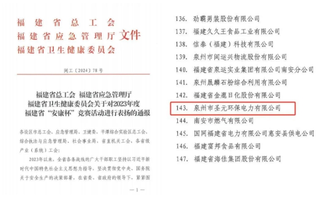 近日,福建省总工会、福建省应急管理厅、福建省卫生健康委员会决定,通报表扬一批在2023年度福建省“安康杯”竞赛活动中表现突出的单位和个人,泉州8868体育榜上有名。