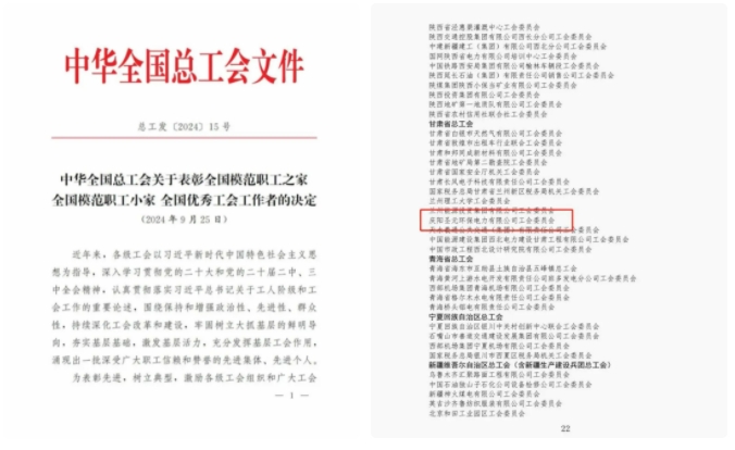 近日,中华全国总工会下发《关于表彰全国模范职工之家 全国模范职工小家 全国优秀工会工作者的决定》,庆阳8868体育电力有限公司工会委员会被授予“全国模范职工之家”称号。
