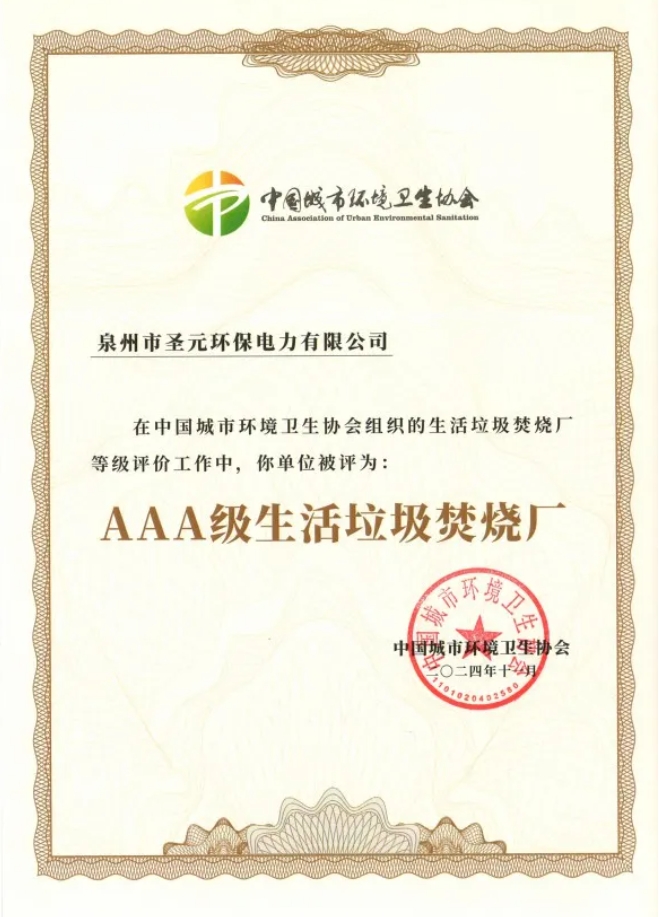日前,泉州市8868体育电力有限公司顺利通过中国城市环境卫生协会组织的生活垃圾焚烧厂无害化等级评定,获评国家AAA级生活垃圾焚烧厂。AAA级代表全国生活垃圾处理设施无害化最高等级,标志着泉州8868体育生活垃圾无害化处理已达到国内领先水平。