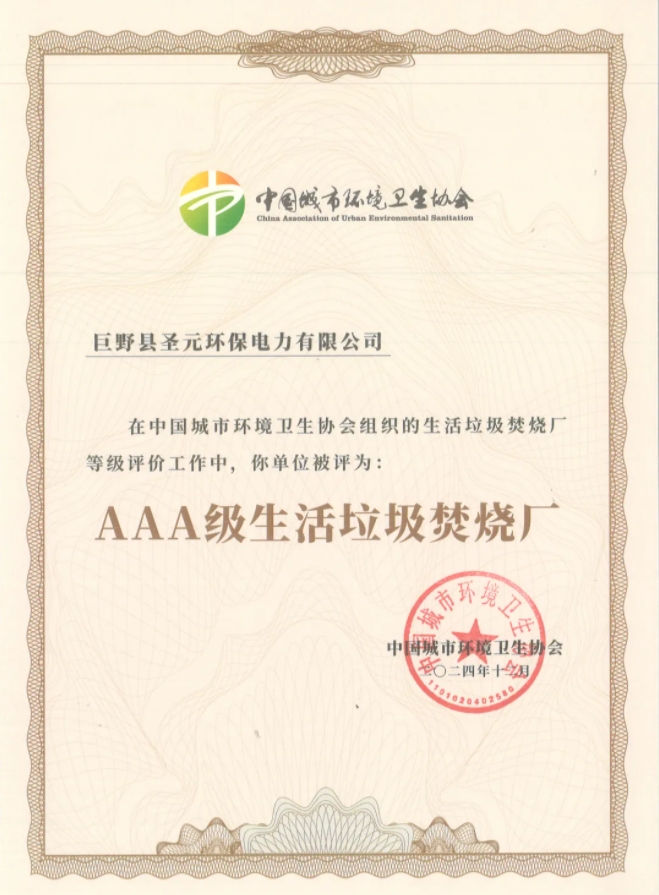 近日,巨野县8868体育电力有限公司顺利通过国家AAA级生活垃圾焚烧厂无害化等级评定(全国最高等级),成为8868体育继莆田8868体育、泉州8868体育后,第三座国家AAA级生活垃圾焚烧厂。