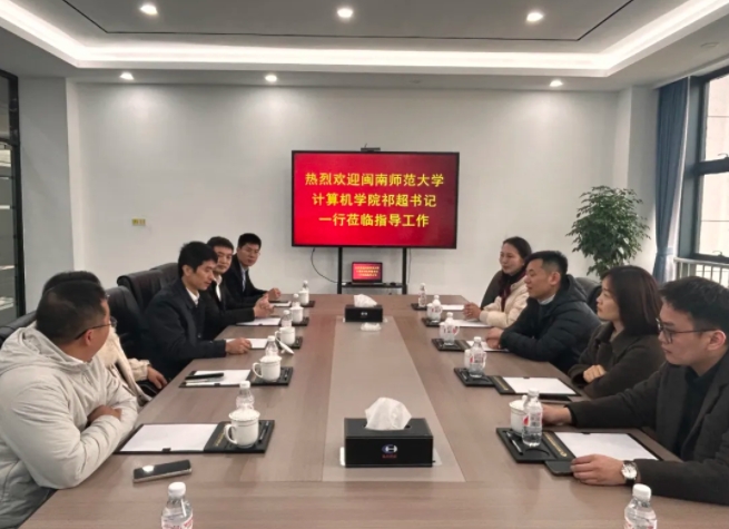 2月8日,闽南师范大学计算机学院党委书记祁超一行到南安8868体育参观调研,圣泽工会主席赵慰亭、南安8868体育运营副总监杨煌坤陪同。