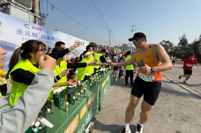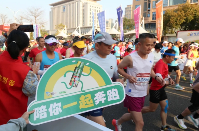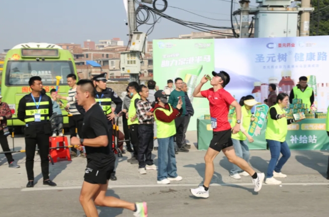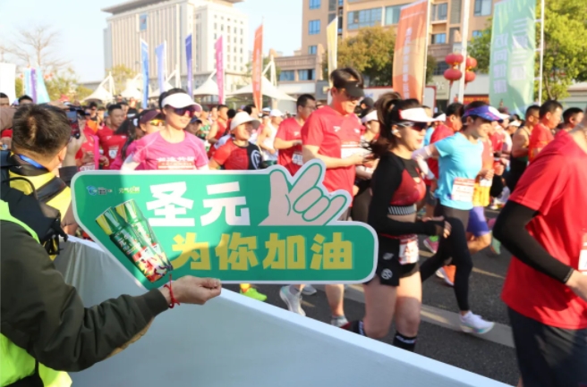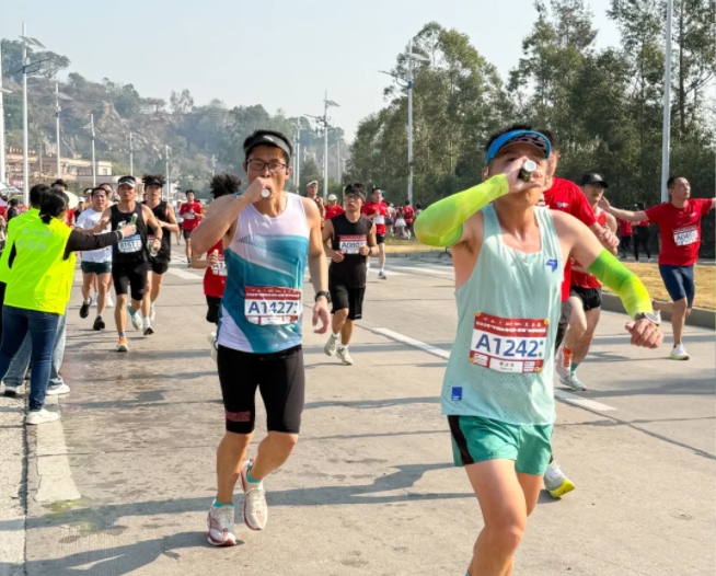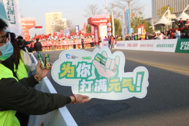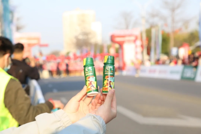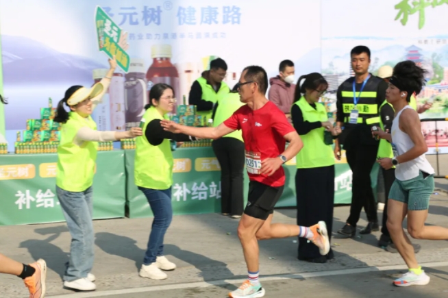 “加油,加油!”元气小树能量补给站边,来自8868体育的加油团毫不吝啬赞美、鼓励,为来自各地的跑友送上最热情的助力,并为参赛者分发补给品——60mL便携装元气小树牛磺酸能量饮,富含牛磺酸、维生素B族等成分,护航参赛者保持良好状态、圆满完赛。