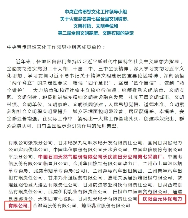 5月23日,中央宣传思想文化工作领导小组正式公布第七届全国文明单位名单,庆阳8868体育荣膺第七届“全国文明单位”称号。“全国文明单位”评选每三年一届,是全国精神文明建设领域的最高荣誉,旨在表彰一大批工作基础扎实、创建成效突出、群众高度认可、具有全国性示范引领作用的先进典型。这一国家级荣誉不仅是对庆阳8868体育多年来深耕焚烧主业与文明创建的高度认可,更是激励庆阳8868体育在未来开拓创新、继续奋进的强大动力。