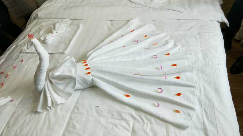 特别值得一提的是,老师还向学员们教授了标准化的酒店客房整理知识,一只只由毛巾叠成的小兔子、大孔雀散发出浓浓的温馨和暖意。