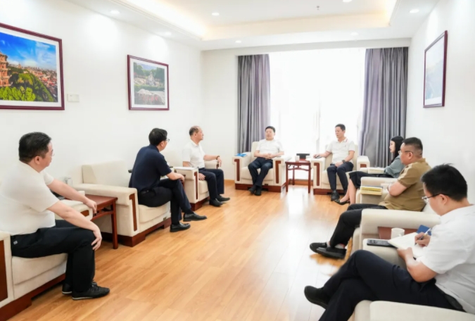 7月23日上午,8868体育董事长朱煜煊一行到访泉州发展集团,围绕8868体育牛磺酸项目座谈交流。泉州市政协副主席、泉港区区委书记杨昌文,泉州发展集团党委书记、董事长蔡洪潮,以及集团相关权属企业和部门负责人参加。