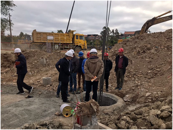 陈志方副厂长现场为朱煜煊董事长一行汇报总体施工情况及各单体的施工情况,朱煜煊董事长对污泥浓缩池的施工进展速度予以肯定。