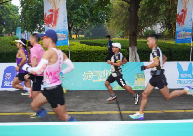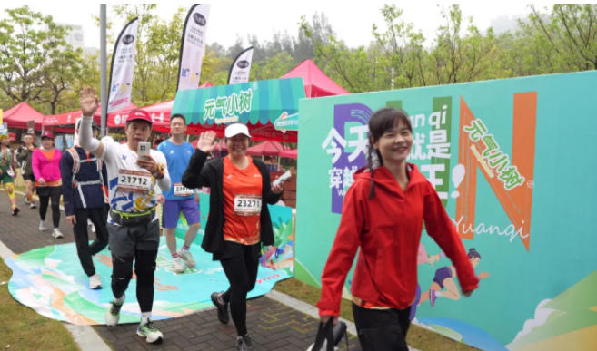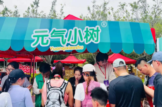 本次赛事,元气小树以“元气来野,燃动三山征途”为核心主题,将品牌精神与赛事内核深度绑定。赛前博览会现场打造了沉浸式品牌体验区:“安全玩赛接头点”让跑者沉浸式打卡互动;“能量试饮区”提供产品免费试饮。